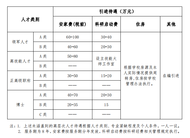 江苏新宝gg技术学院是江苏省属公办全日制高校,坐落在江苏省三大都市圈之一、淮海经济区中心城市——徐州。新宝gg办学综合实力强,是国家示范性高职学院、国家优质高职院校、国家“双高计划”建设单位、江苏省卓越高职院校建设单位、江苏省高水平高职院校建设单位。新宝gg位于徐州市泉山风景区,占地面积1200亩,普通全日制在校学生15000余人,成人教育在籍学生12000余人,现有教职工近1000人,其中博士教师占比15%。现有国家级实训基地2个,省级产教融合实训平台2个,省智慧建造产教融合集成平台、省开放共享型实训基地、市产教融合实训平台等。建成中国住建协会BIM培训中心、淮海经济区BIM中心及大数据创新基地,设有国家职业技能鉴定所,是国家建设行业技能型紧缺人才培训基地、江苏省建筑产业化实训人才培训基地。新宝gg大力推进科技创新发展,现有1个省协同创新中心、省市级科研平台54个,省研究生工作站1个,博士后工作站1个,是“江苏省科技工作先进高校”。新宝gg积极拓宽国际合作交流渠道,与40多所国(境)外高校建立友好合作关系,累计培养700余名留学生,设有5个境外分校,是全国首批高职来华留学生高等教育质量认证试点院校、江苏省优才计划项目新宝gg、江苏省政府奖学金新宝gg。 “十四五”期间,新宝gg锚定职业本科教育发展目标,将进一步实施人才强校战略。为提高师资队伍水平,现依据江苏建筑新宝gg技术学院2024年高层次人才引进办法,诚邀海内外高层次人才群策群力全面推进新宝gg事业高质量发展再上新台阶。 一、基本条件 1.具有中华人民共和国国籍,遵守中华人民共和国宪法和法律。 2.遵纪守法,品行端正,团结协作,敬业爱岗,廉洁奉公。 3.适应岗位要求的身体条件,能从事教学、科研等一线工作。 4.年龄条件:具有正高级专业技术职称年龄不超过45周岁,即1979年1月1日以后出生,且具有本科及以上学历;博士研究生(含学历和学位)年龄不超过35周岁,即1989年1月1日之后出生,其中名校毕业(最新QS排名前200)、紧缺急需学科的优秀博士研究生或具有副高级以上职称的博士研究生,年龄可放宽5岁,即1984年1月1日之后出生;具有相应人才称号的高技能人才须为硕士研究生及以上学历,同时为副高级以上职称且年龄不超过45周岁,即1979年1月1日之后出生。 二、人才类别及引进条件